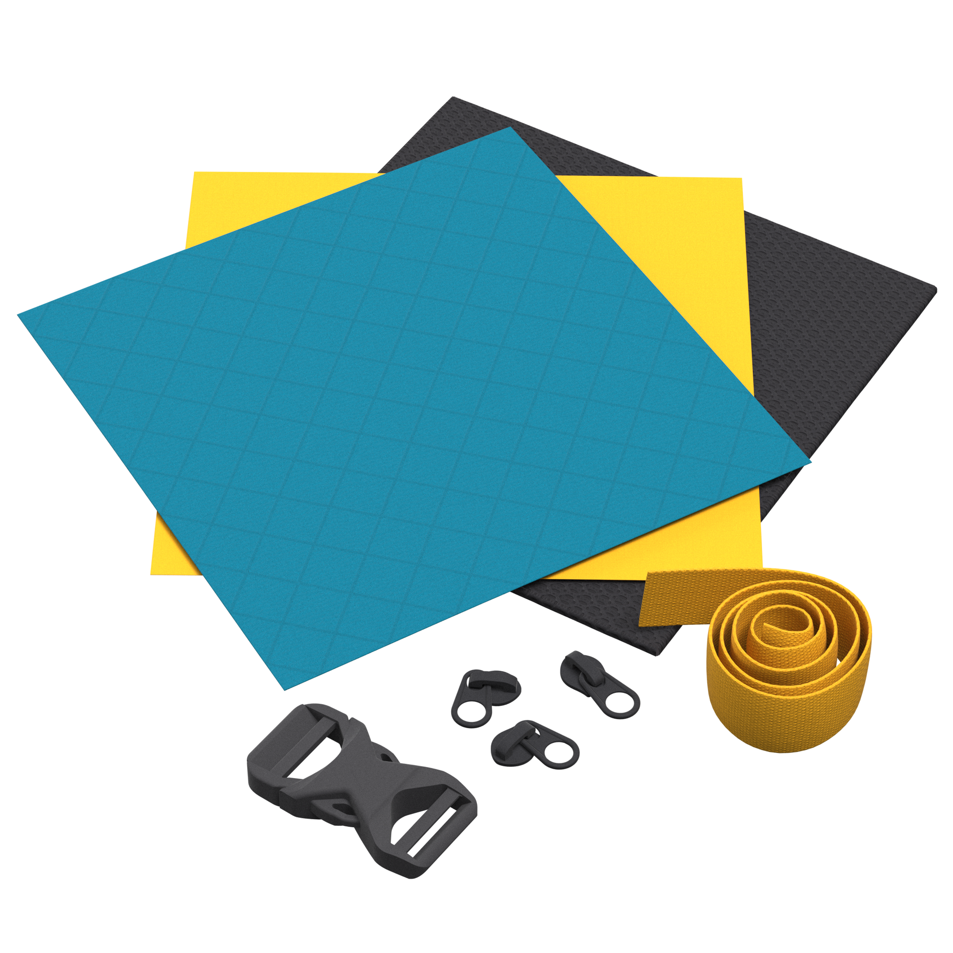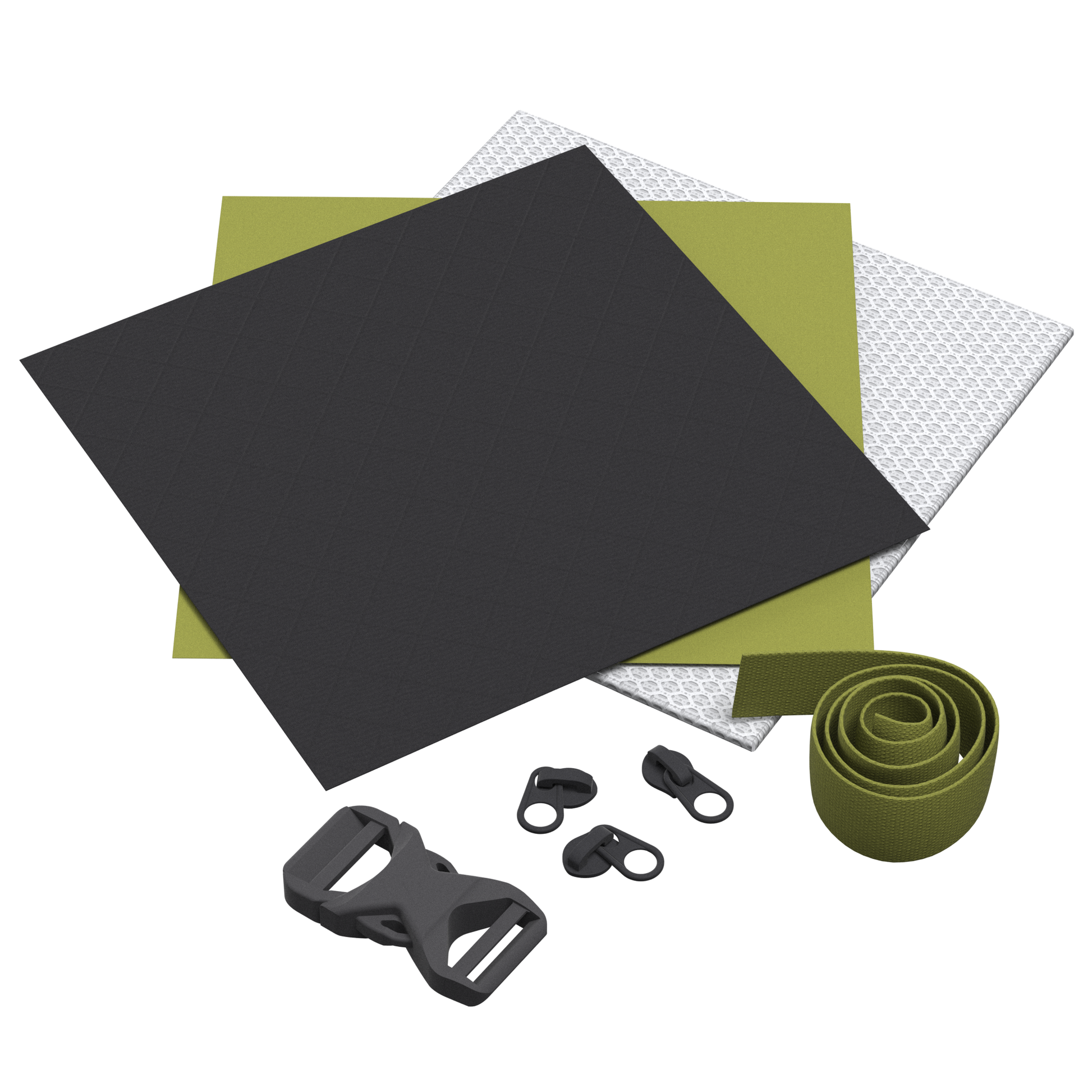 For trim you get zipper tape (no coil), zipper sliders, webbing, and a standard side release buckle.